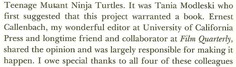 When I joined the editorial board of Film Quarterly in 1977, the editor was Chick Callenbach, who held this position from 1958 to 1991. Since we had board meetings at least three times a year, he soon became a good friend. His time at the University of California Press was split between editing the journal and functioning as a book editor. My own book, Playing with Power in Movies, Television, and Video Games (1991) was one of the last books he worked on before retiring. He was a brilliant editor who gave me great advice, urging me to omit the Lacanian theory from the introduction, which he claimed would date the book and prevent it from reaching a wider audience Of course, he was right, but unfortunately I didn’t listen. Callenbach was an important figure in the ecological movement. Once his book, Living Poor with Style, was published in 1972, people referred to him as Uncle Chick, and Woody Allen used him as the persona for the character he played in the 1972 film version of Play It Again, Sam, a film critic with a similar body-build, living in the Bay area. And once Chick published his 1975 utopian novel Ecotopia, in which Northern California, Oregon and Washington secede from the USA to live a life more in tune with nature, he became a cult figure worldwide.
