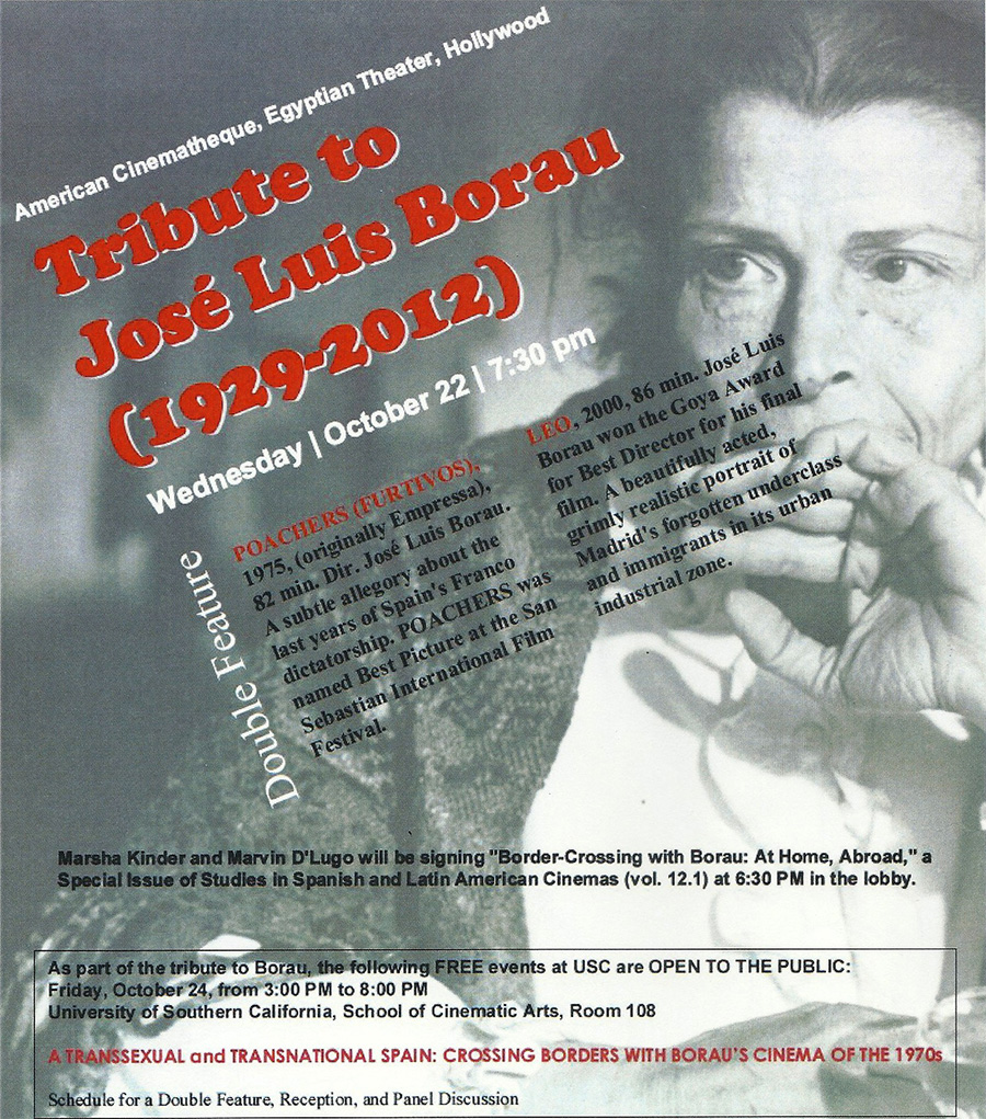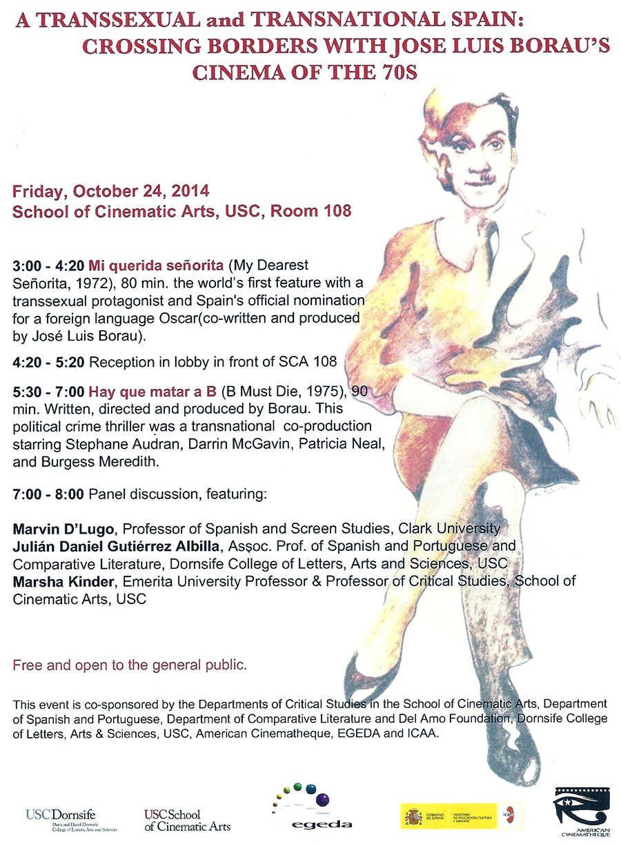 As my USC colleague from the Spanish Department, Julian has been very willing to collaborate on all events related to Spanish cinema. He helped me convince the American Cinematheque to include a tribute to the great filmmaker, José Luis Borau (who passed away in 2012), in their 2014 series on Recent Spanish Cinema. He also was a panelist in the forum that followed the screenings at USC and contributed a marvelous essay on Mi querida señorita to our special volume on Borau. He also included my essay, “The Road and the Room: Narrative Drive in the Films of Luis Buñuel,” in the 2013 volume that he co-edited with Rob Stone, titled A Companion to Luis Buñuel.