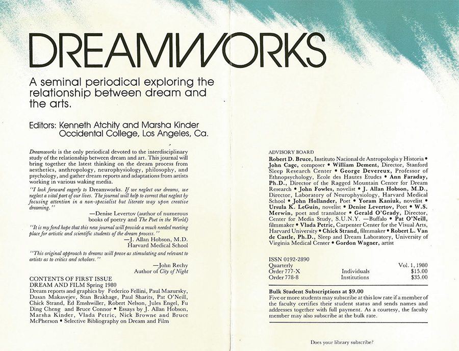 After launching our new quarterly Dreamworks, Ken and I took turns editing the individual issues. Though we came up with the idea for the journal while we were colleagues in the Dept. of English and Comparative Literature at Occidental College, both of us soon moved on. I moved to film studies at USC, and he gave up his tenured position to start a new career in publishing.